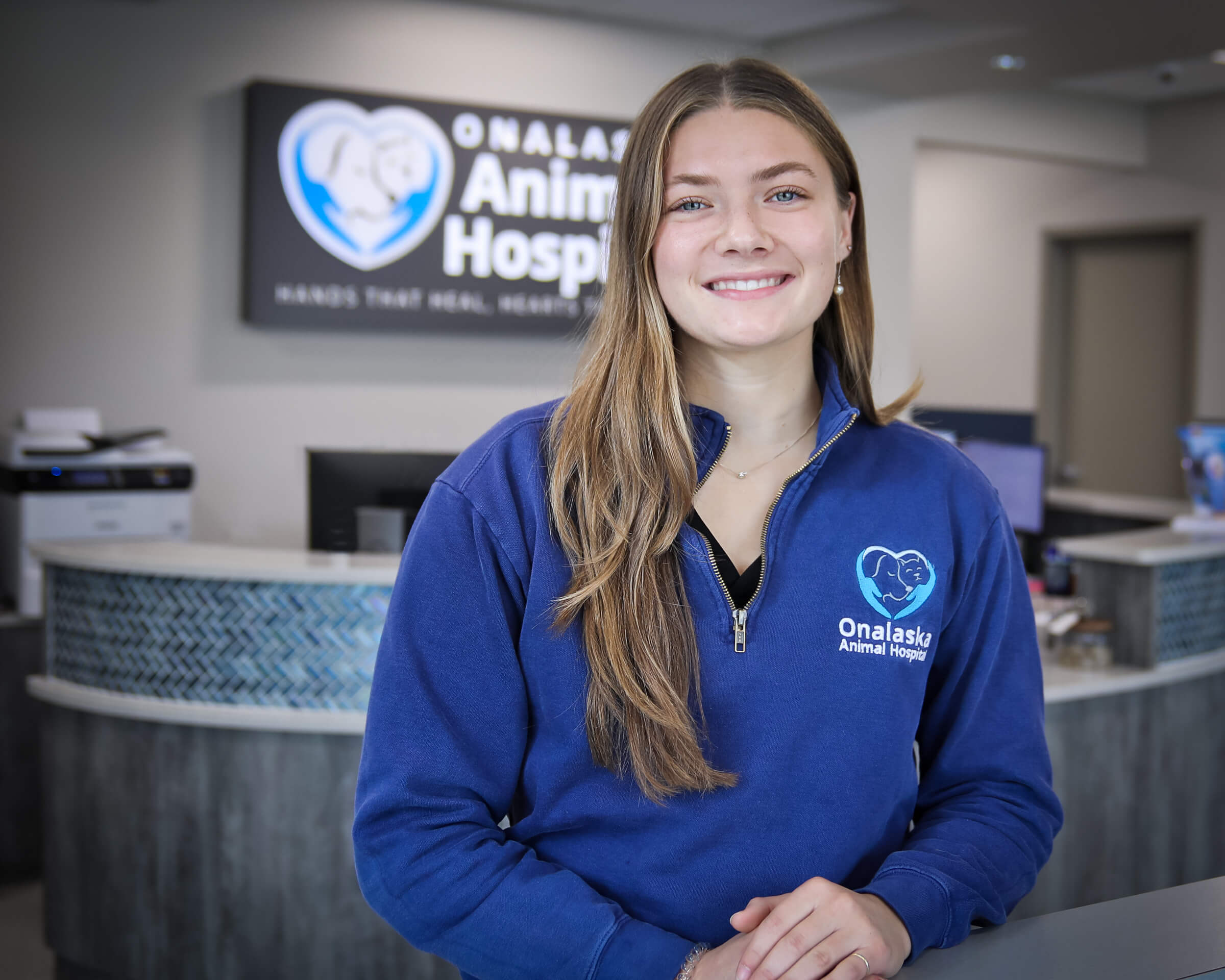 She began her career working for a groomer before attending vet tech school at Rochester Community and Technical College. She joined Onalaska Animal Hospital with 12 years of experience working with animals.
